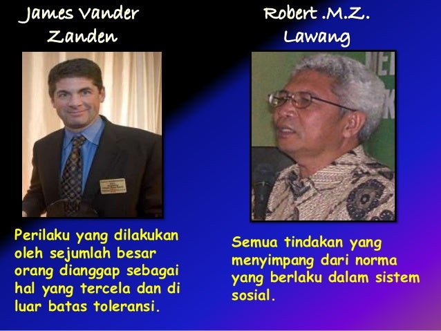 Robert M.Z. Lawang: berpendapat bahwa perilaku menyimpang adalah semua tindakan yang menyimpang dari norma-norma yang berlaku dalam suatu sistem sosial dan menimbulkan usaha dari mereka yang berwenang dalam sistem itu untuk memperbaiki perilaku tersebut